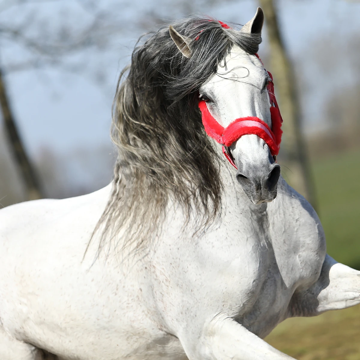 - het kopstuk, de neusband en de bakstukken zijn zacht onderlegd met imitatie bont