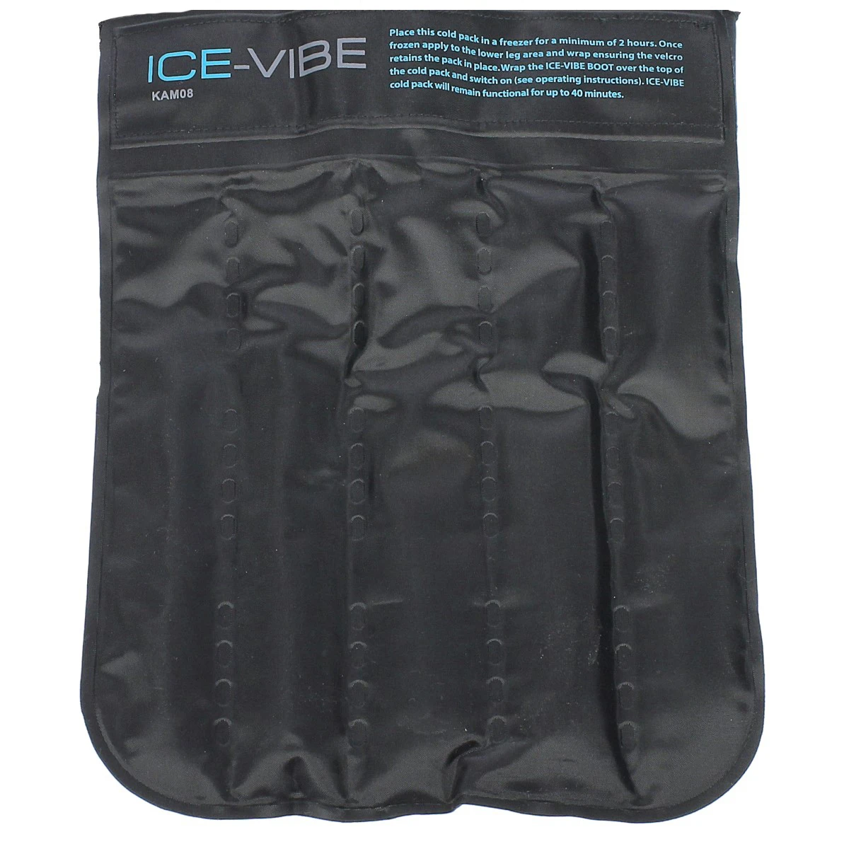 De anatomisch gevormde boots van neopreen hebben vakken aan de voorzijde waarin de trilstrips gestoken kunnen worden. Door middel van stevig klittenband kunnen de uitneembare cold packs bevestigd worden. Dankzij het slimme ontwerp kan de knie nog wel licht gebogen worden.