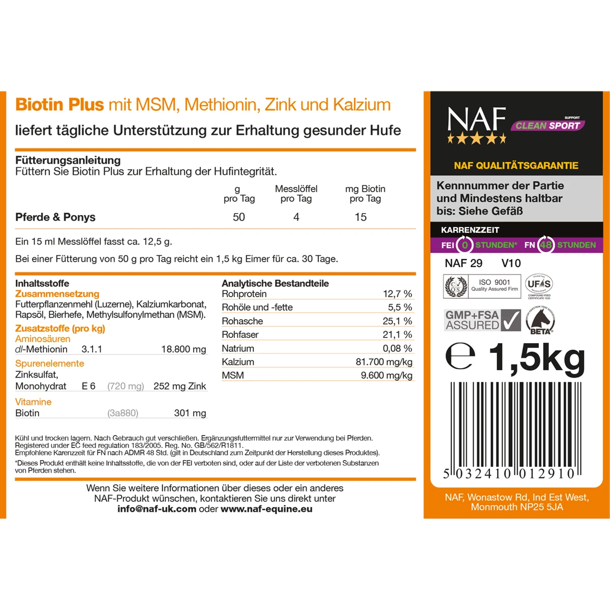 - een biotine-supplement met belangrijke extra’s voor een gezonde en sterke hoorn en een goede hoefgroei