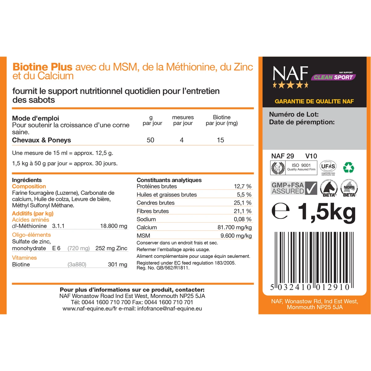 - gezien de tijd die het hoorn nodig heeft om aan te groeien dient Biotine Plus 4-6 maanden geven te worden