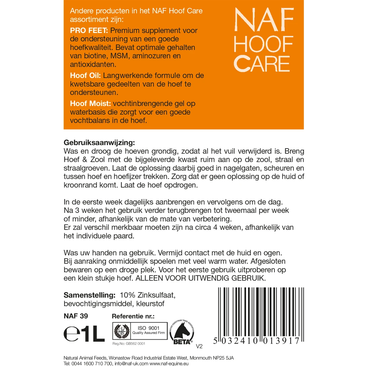 Let op! Door het uitdrogende effect moet contact met de buitenkant van de hoef, kroonrand en de huid vermeden worden!