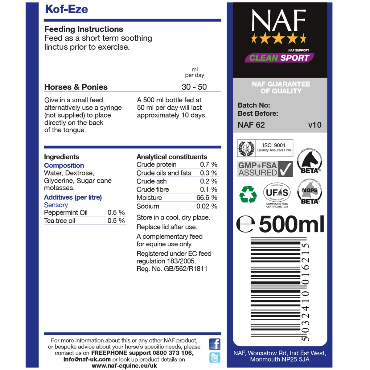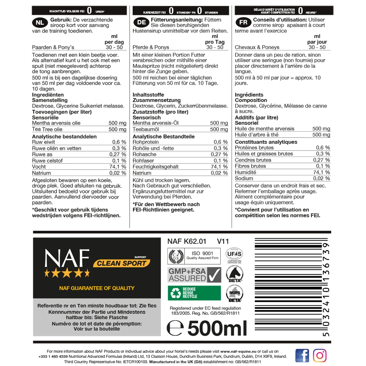 Samenstelling: Water, dextrose, glycerine, propionzuur, zetmeel, xanthaan gom, pepermunt olie, teatree olie, kleurstof (caramel)