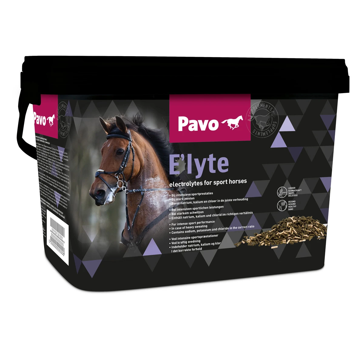 Voor een optimaal resultaat geef je twee tot drie dagen vóór de prestatie Pavo E’lyte, zodat een paard een voorraadje kan opbouwen. Bij lichte arbeid is 100 gram per dag voldoende. Geef bij intensieve inspanning of erg warm weer 200 gram per dag.
