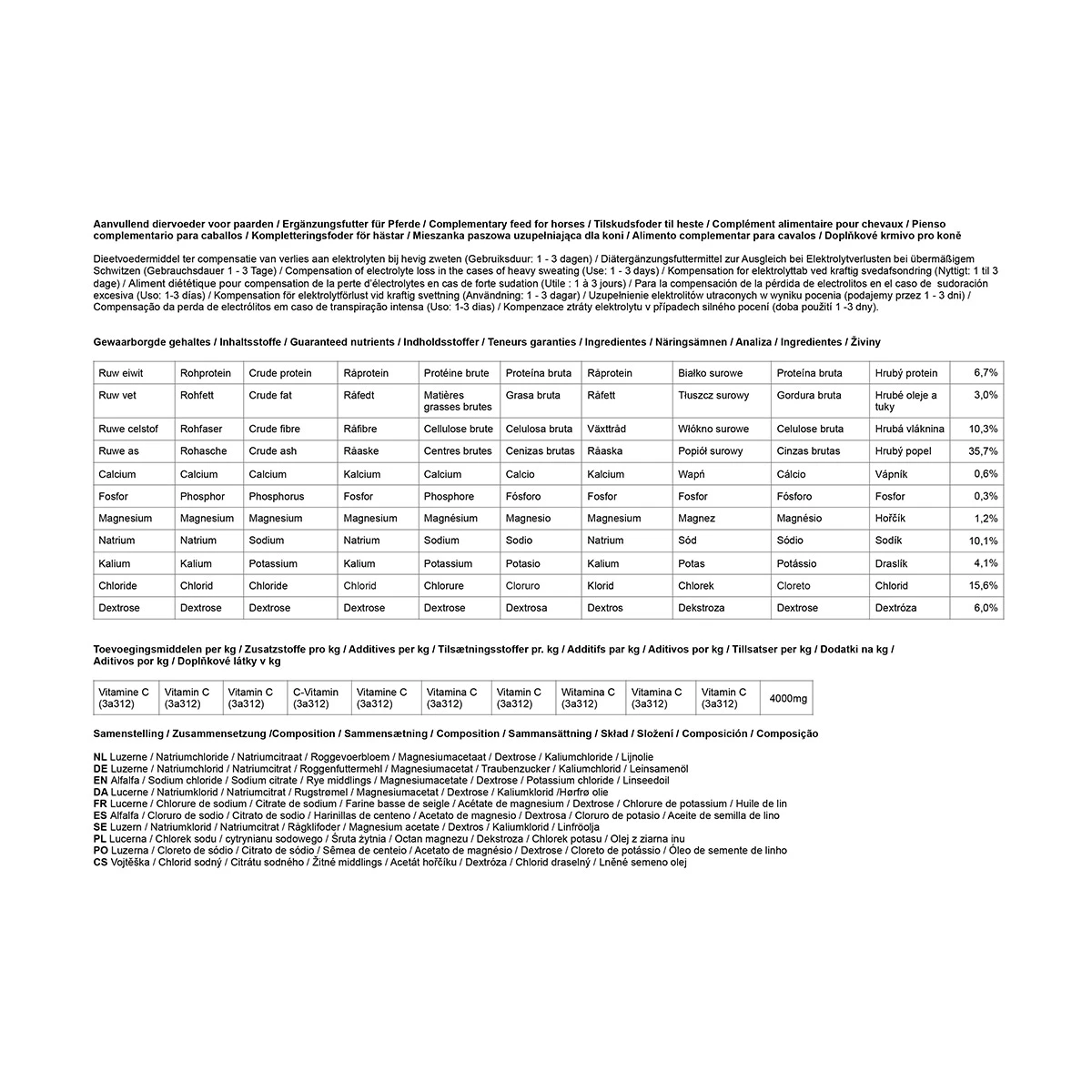 - er is meer magnesium toegevoegd, omdat een paard dit mineraal ook verliest als hij veel zweet en het een belangrijke rol heeft in het lichaam