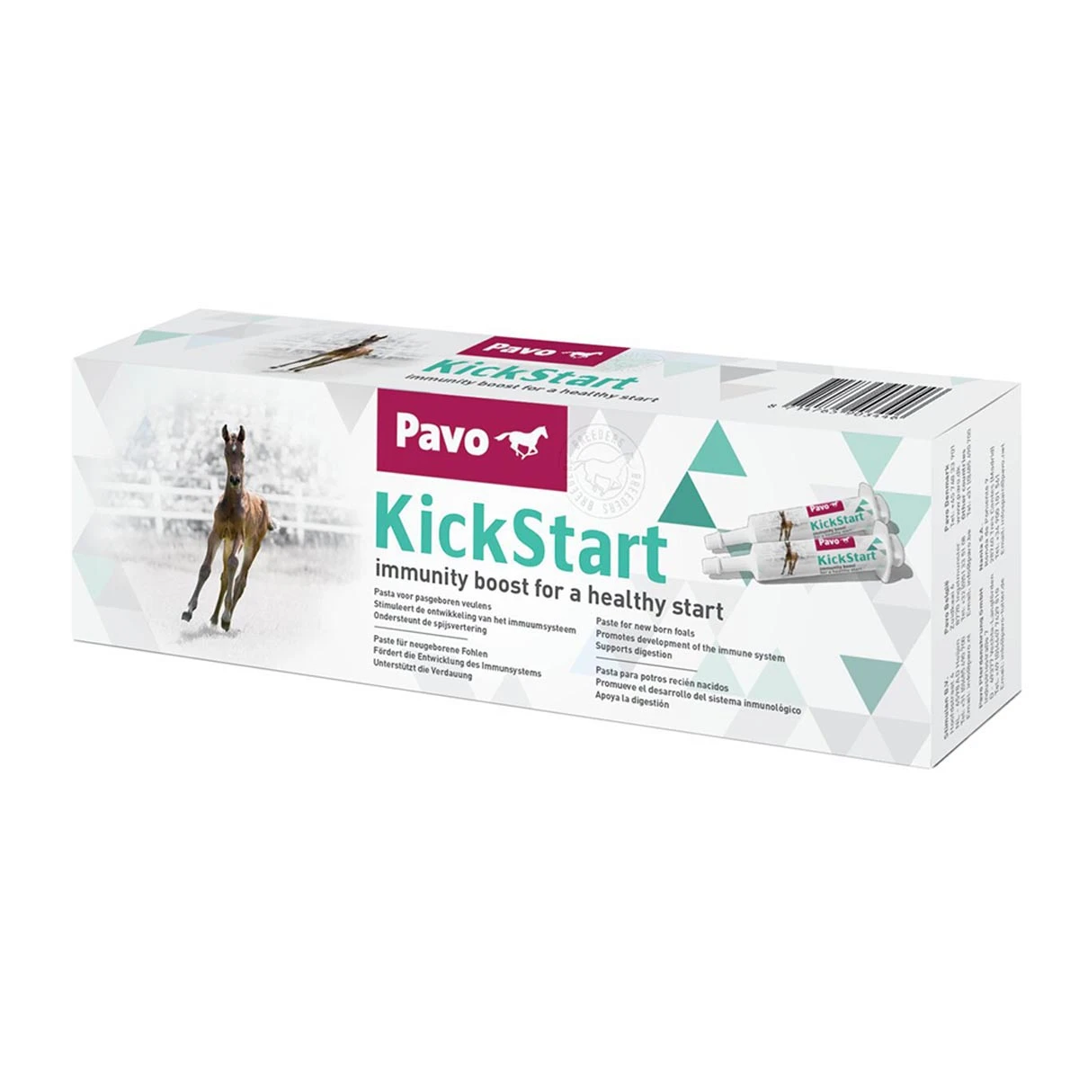 Geef de eerste spuit Pavo KickStart na de eerste biestinname en de tweede spuit binnen de volgende 24 uur (1 verpakking Pavo KickStart bevat 2 spuiten).Gebruik de hele spuit. Alleen voor (hele) kleine pony’s, zoals shetlanders, is een halve spuit voldoende.