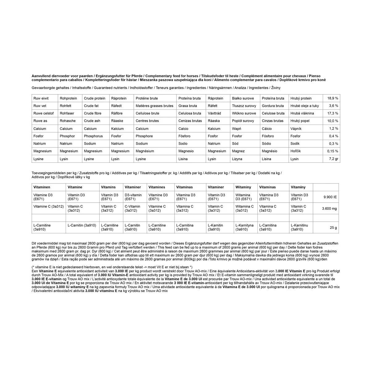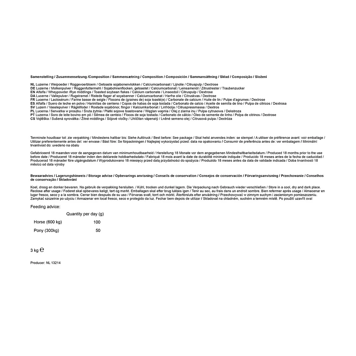 - bevat geen tarwe, dus is ook geschikt voor paarden die gevoelig zijn voor gluten