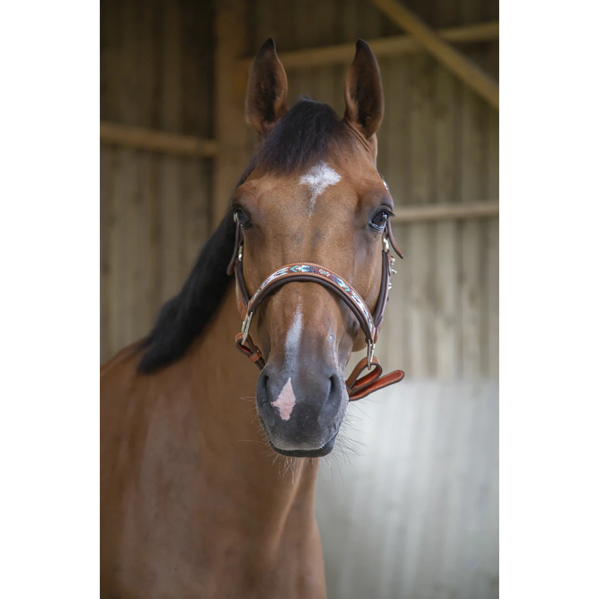 - verstelbaar bij het kopstuk, de kaakriem en de neusriem