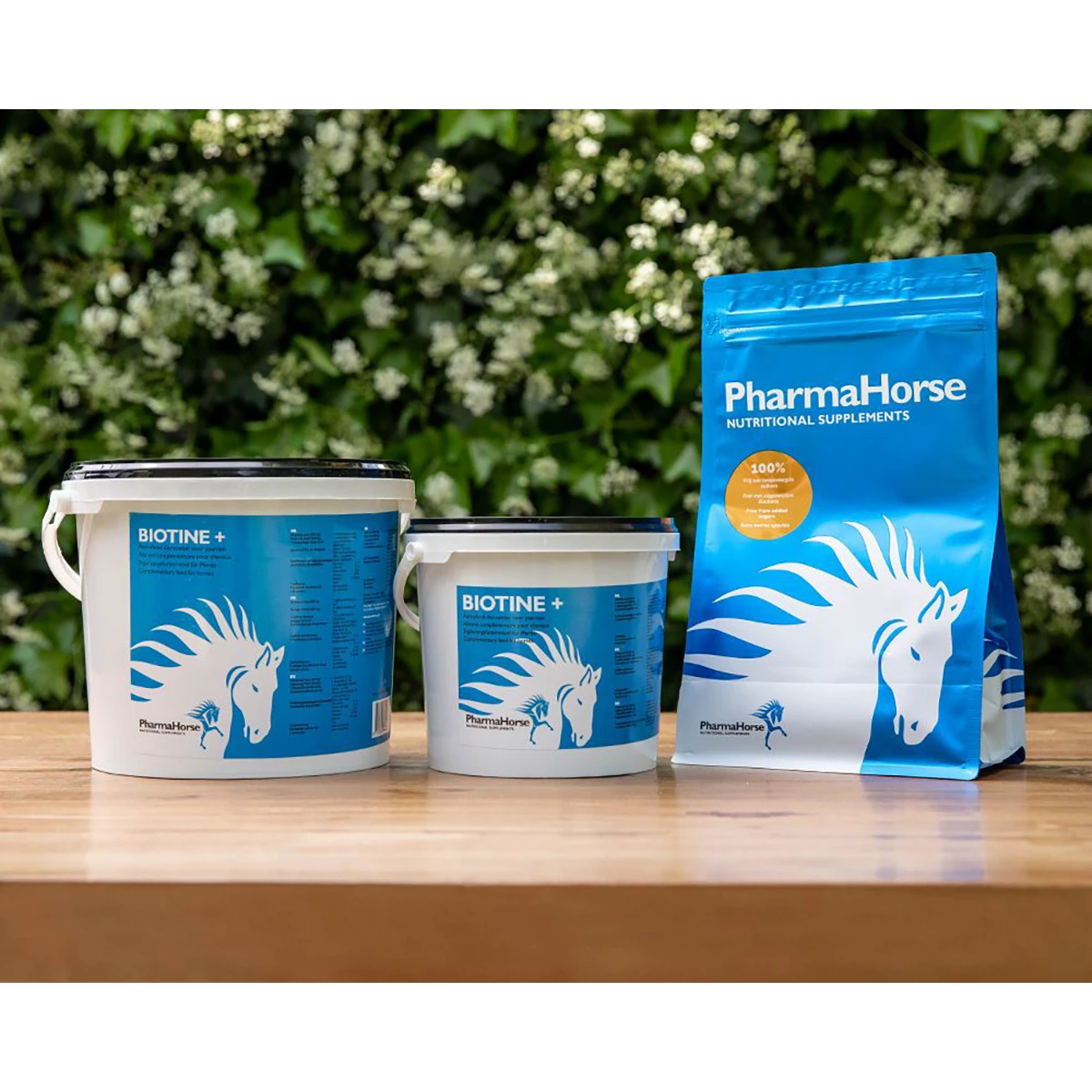 - Pharmashorse Biotine+ ondersteunt gezonde hoeven, haar en huid