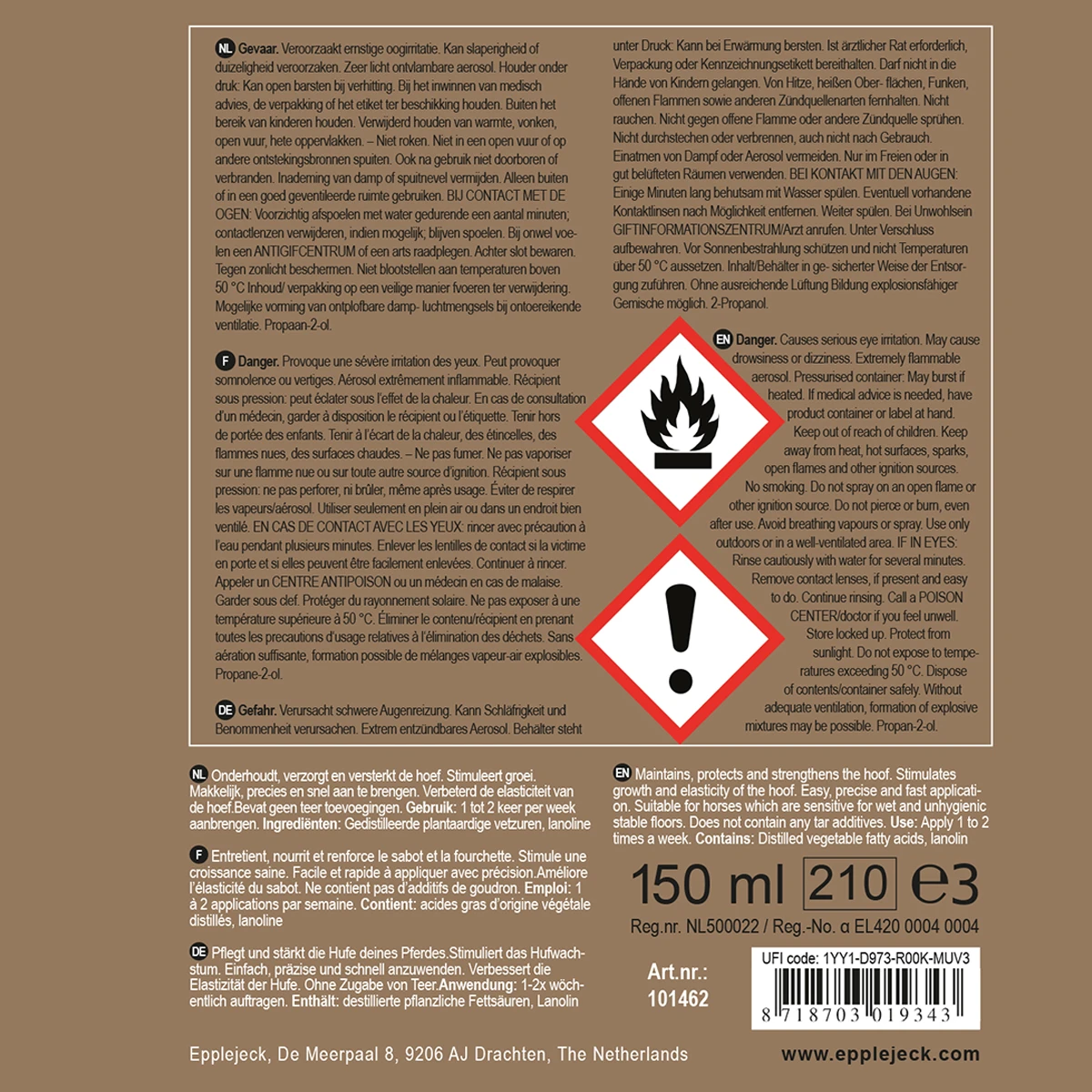 - werkt ondersteunend bij de groei en elasticiteit van de hoef