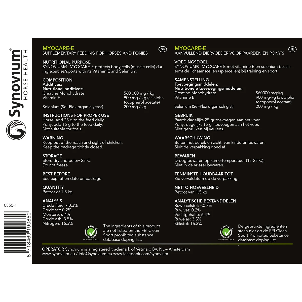 - uniek voedingssupplement van Synovium, wat zorgt voor meer energie, spierkracht en uithoudingsvermogen van het paard