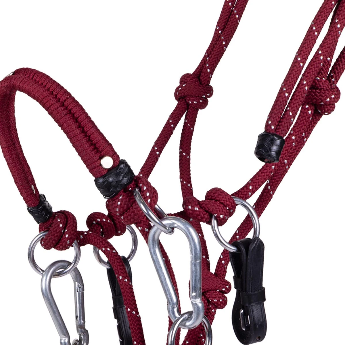 - niet geschikt om het paard onbeheerd mee vast te zetten, te voeren of in de weide mee te zetten omdat het touwhalster niet breekt