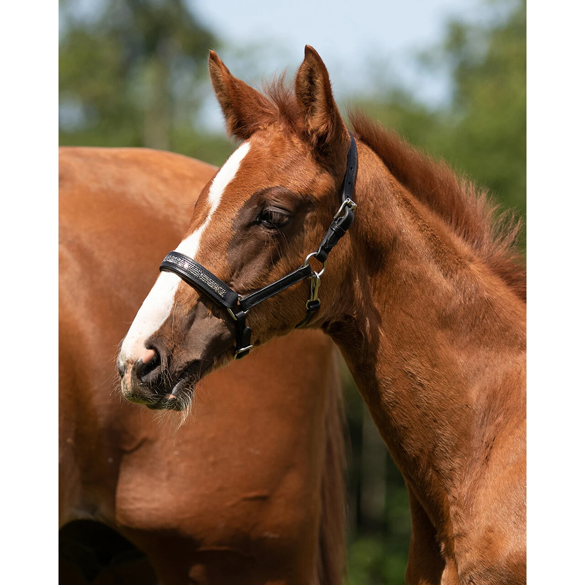 - luxe leren veulenhalster met strass steentjes in de neusriem