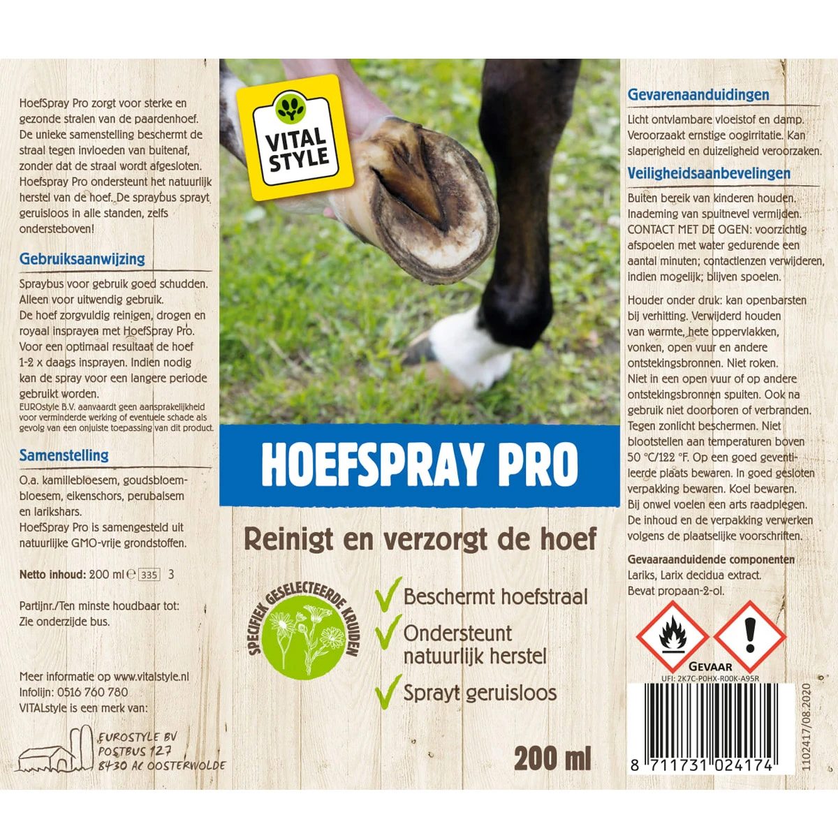 - gebruik HoefSpray: voor gebruik goed de hoeven reinigen en drogen en vervolgens royaal insprayen. Voor het beste resultaat spray je de hoeven/stralen 1-2 maal daags in met HoefSpray. Kan zonder problemen langere tijd gebruikt worden.