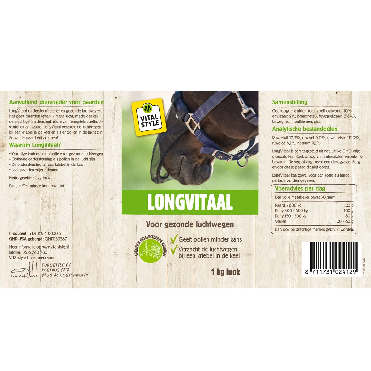 - longvitaal is een aanvullend diervoeder voor ondersteuning van de luchtwegen van het paard